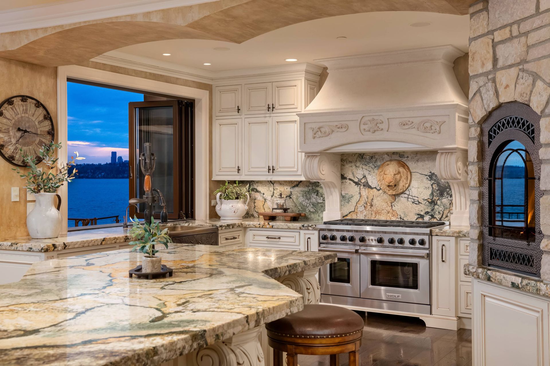 - Evenings end by the fire, with the sunset over Lake Washington